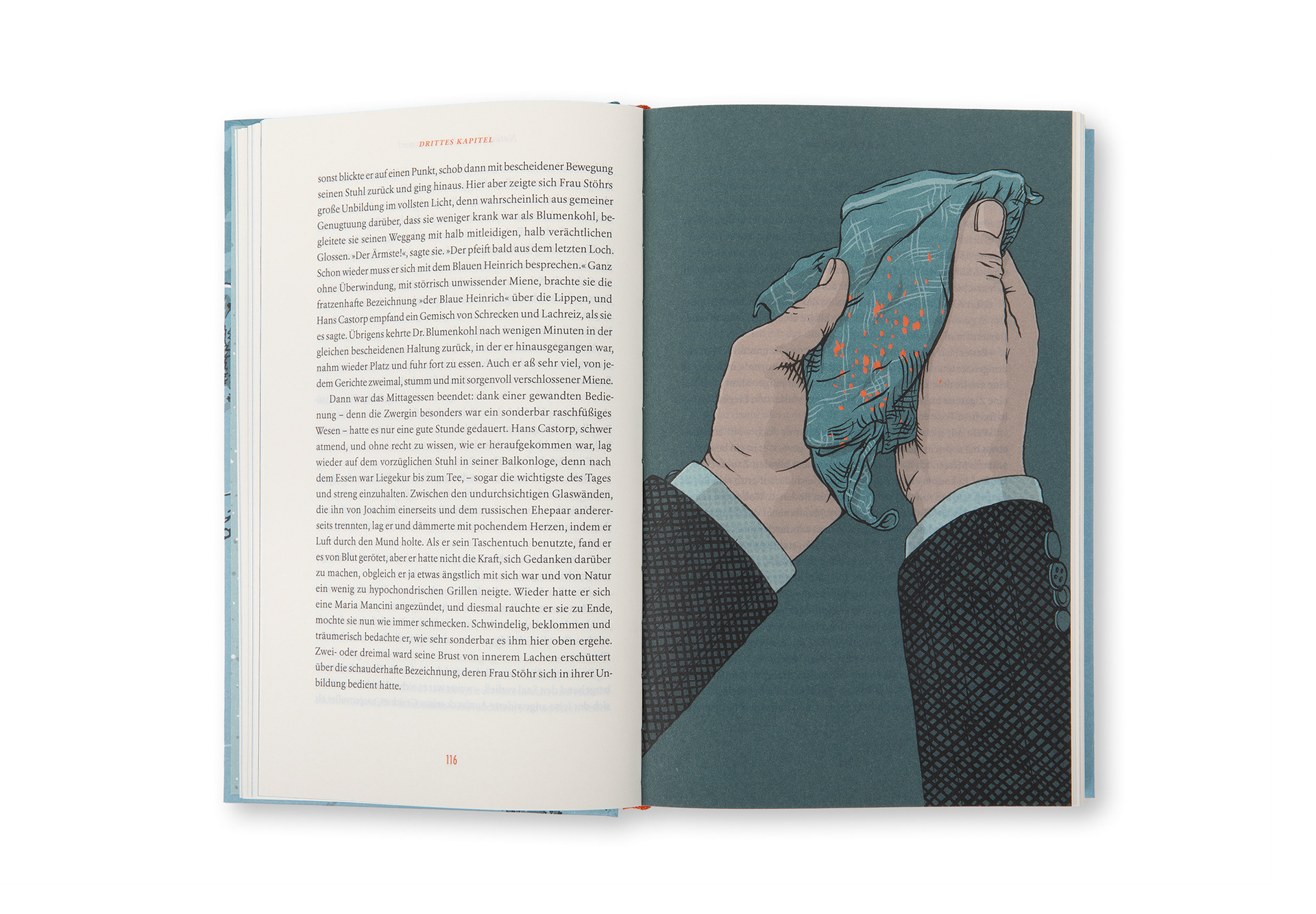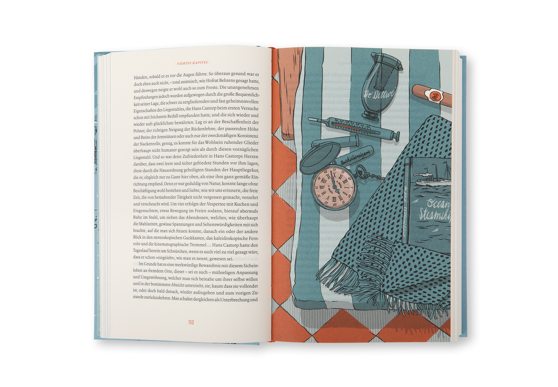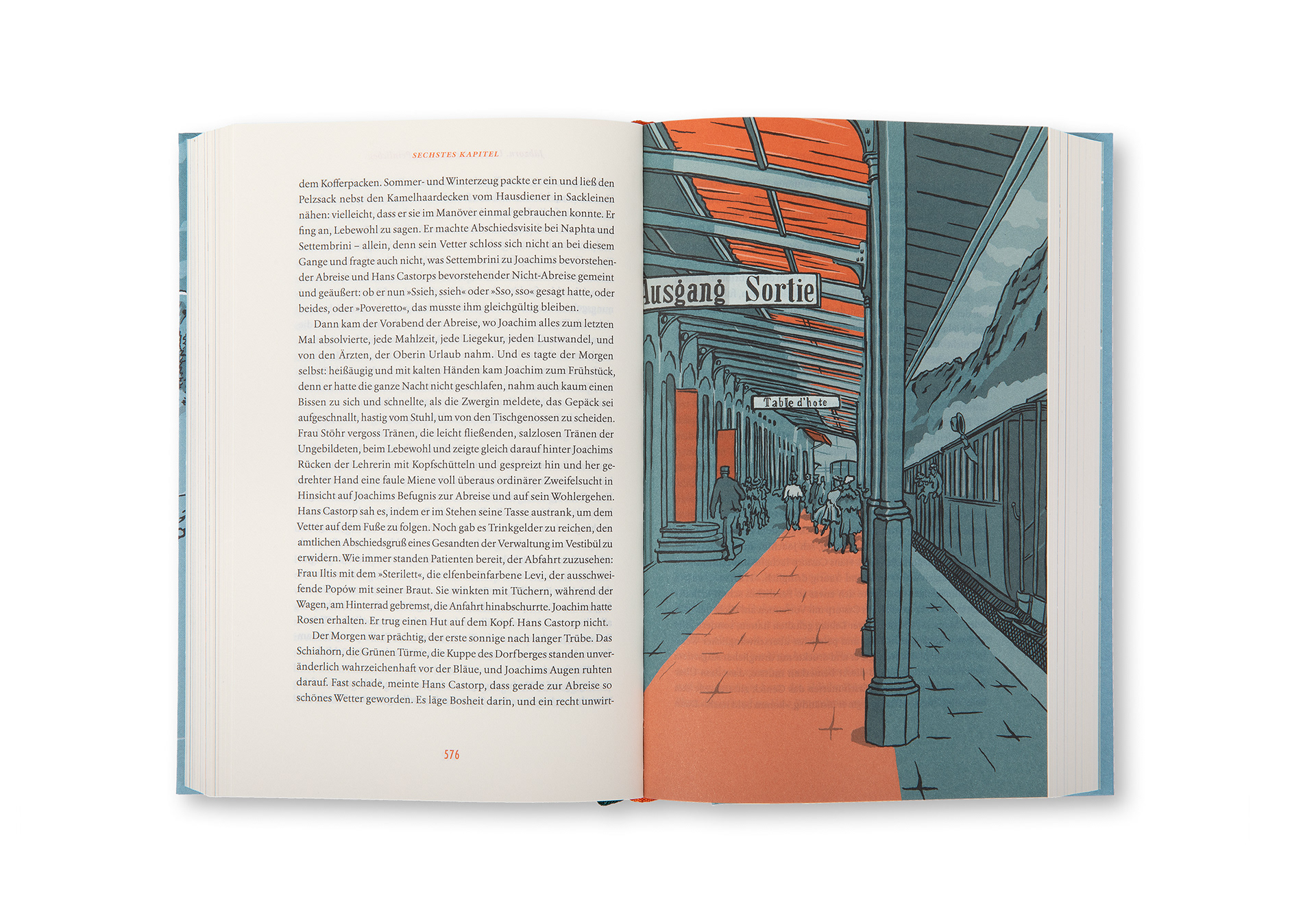 Colour vignettes and full-page illustrations for the deluxe edition of Thomas Mann's novel, published by Reclam Verlag; 1006 pages, thread stitching, ribbon bookmark, ISBN: 978-3-15-011538-1